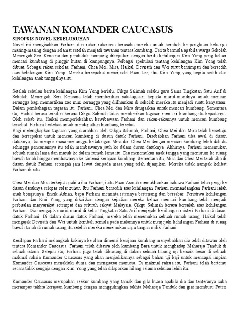 Tawanan komander caucasus mp3 & mp4. Episod 11 musuh menjadi sahabat #kd10hebat. Cuit cuit bahasa novel tawanan komander caucasus. Sinopsis, tema, persoalan, nilai, pengajaran, gaya bahasa, plot, teknik. Novel tawanan komander caucasus (k): Episod 11 musuh menjadi sahabat #kd10hebat. Watak & perwatakan, plot dan nilai pengajaran. Tawanan komander caucasusketika manusia menjadi entiti ma. (tingkatan 3) novel tawanan komander caucasus.pdf (tingkatan 3) novel tawanan komander caucasus.pdf. Related image with novel tawanan komander caucasus. Tawanan komander caucasus bab 1 & 2. Read 8 reviews from the world's largest community for readers. Novel tawanan komander caucasus :